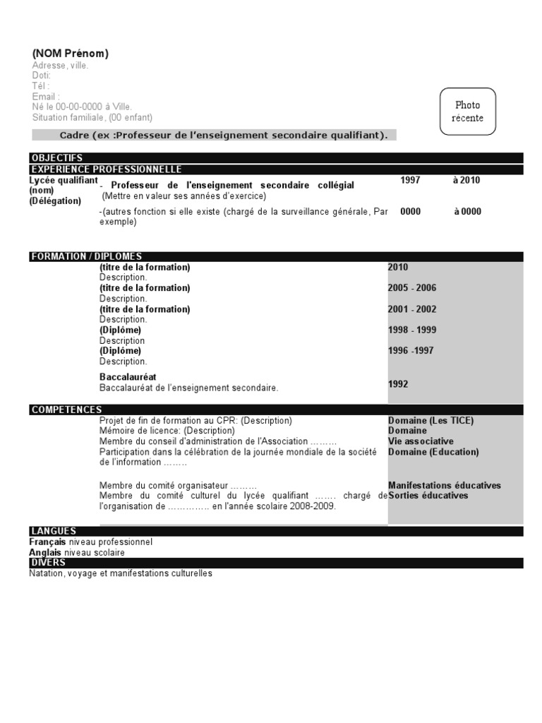 Exemple De Cv En Francais