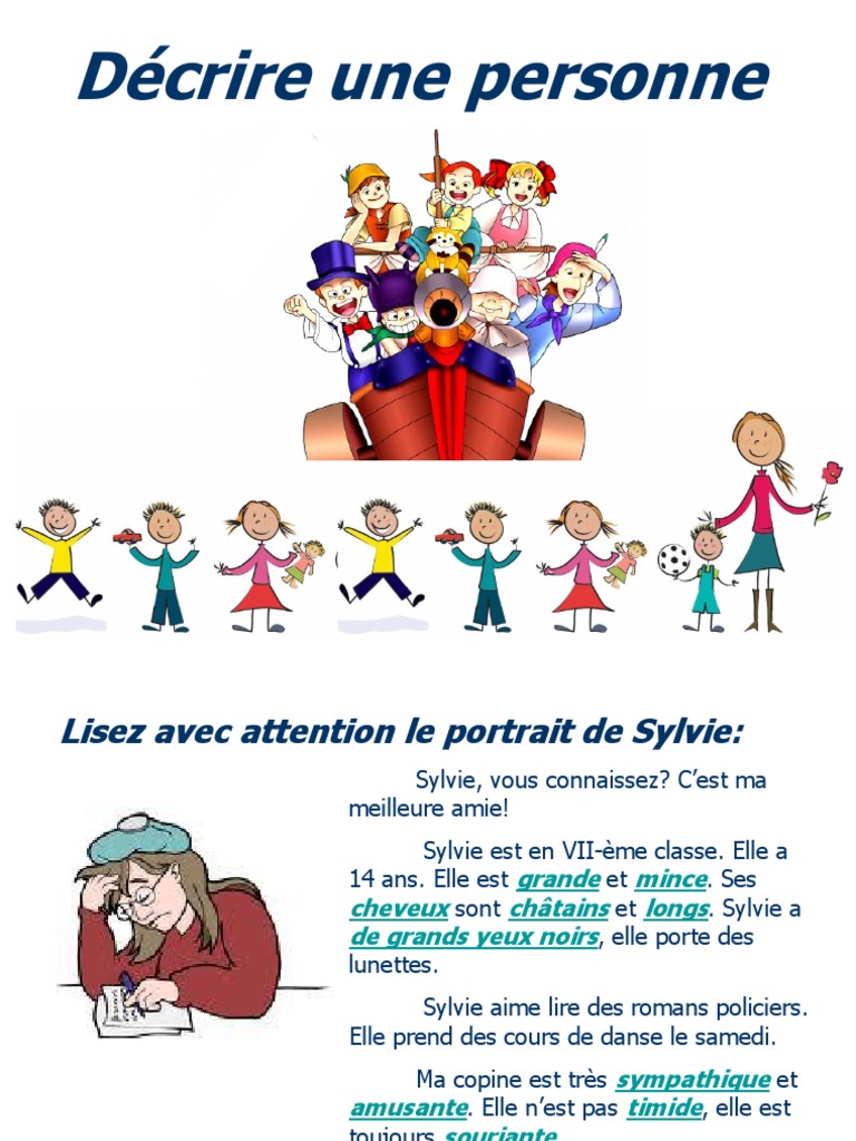 Les élèves lisent la description et compétent avec l'adjectif correspondant.si vous aimez cette fiche, vous pouvez en.